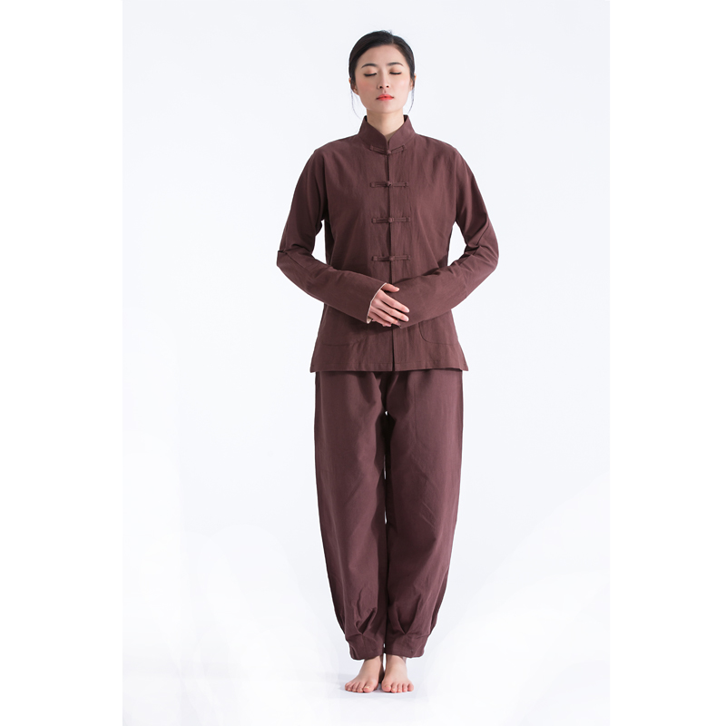 Yoga Zen Suit Women Suit Loose China Wind Gusto female Buddhist sumpsuit Spring and autumn season Long sleeves cotton linen Two sets Zen meaning