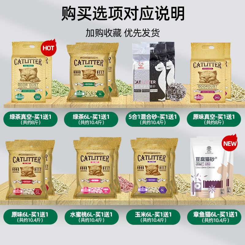 New Product - Original Vacuum 2KG (Buy 1 Get 1 Free) New Product - 5-in-1 Mixed Cat Litter 2.6kg (Buy 1 Get 1 Free) Green Tea Vacuum 2KG (Buy 1 Get 1 Free) Green Tea 2.6KG (Buy 1 Get 1 Free) Corn 2.6KG (Buy 1 Get 1 Free) Original Taste 2.6KG (Buy 1 Get 1 Get 1) Octopus Cat Tofu Litter 2.6KG (Buy 1 Get 1 Free) Octopus Cat Mixed Litter 2.5Kg (Buy 1 Get 1 Free) Original Vacuum 2KG (This item does not participate in buy 1 get 1 free activity) Green Tea 2.6KG (This item does not participate in the buy 1 get 1 free activity) Corn 2.6kg *4 packs of affordable packs (this item does not participate in the buy 1 get 1 free activity)