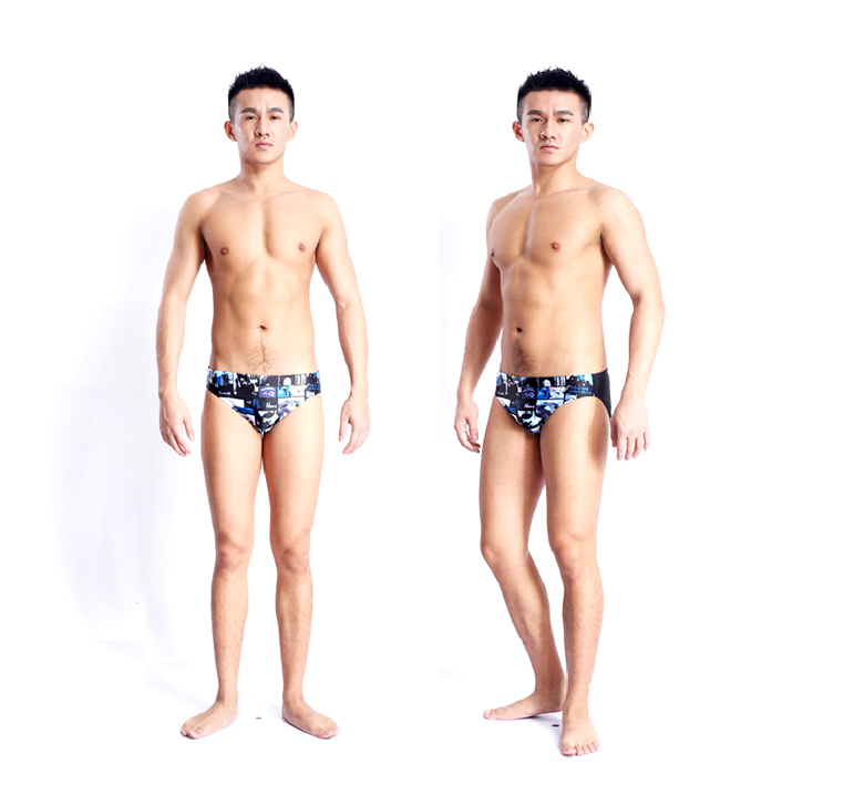 Professional Competition Training Men's Printed Collage Triangle Swimming Trunks Beach Spa Pool Adults Great Children's Korean Edition Fashion