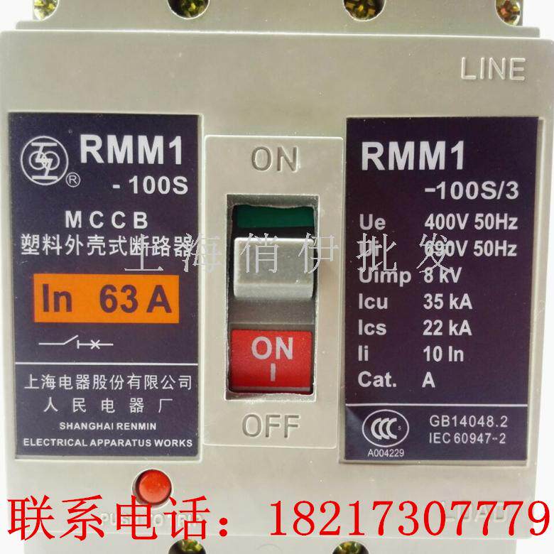 Shanghai people's molded case circuit breaker RMM1-100S 3300 air switch 100A75A63A three-phase