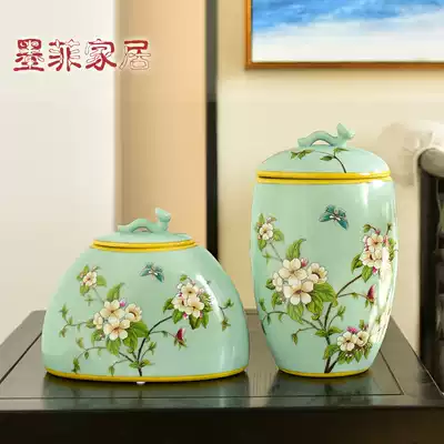 New Chinese decoration Retro ceramic storage tank American living room model room Bogu rack wine cabinet decoration decoration