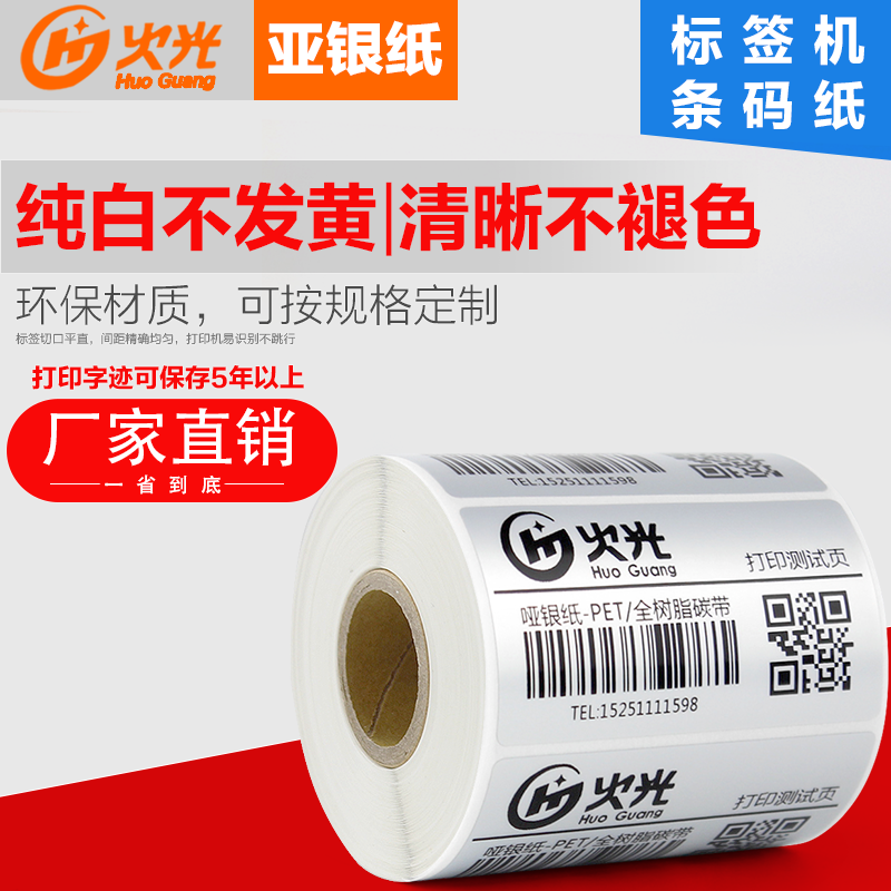 (Single row series) fire light (huoguang) dumb silver paper PET silver sticker barcode printing paper 30 40 50 60 70 80mm series