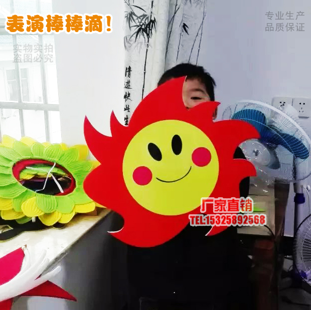 New Red Sun Smile Dance Prop Hand with Flower Stage Performance Supplies Entrance Ceremony