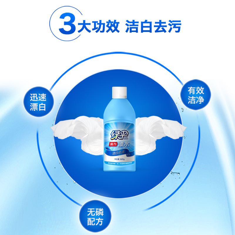 Green umbrella bleach 660g*3 bottles of bleaching water household white clothes bleaching de-yellowing whitening agent bleaching liquid bleaching water