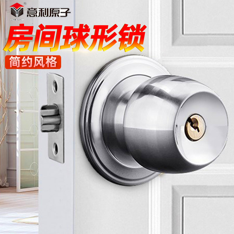 Illy atomic pure copper lock core Stainless steel spherical lock Room door Indoor bedroom Spherical door lock Wooden door ball-shaped lock