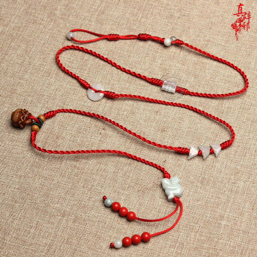 2022 Year of the Tiger Benming Year Red Rope Hand-woven Waist Chain Waist Rope Red Belt Emerald Peach Core Waist Rope Gift Female