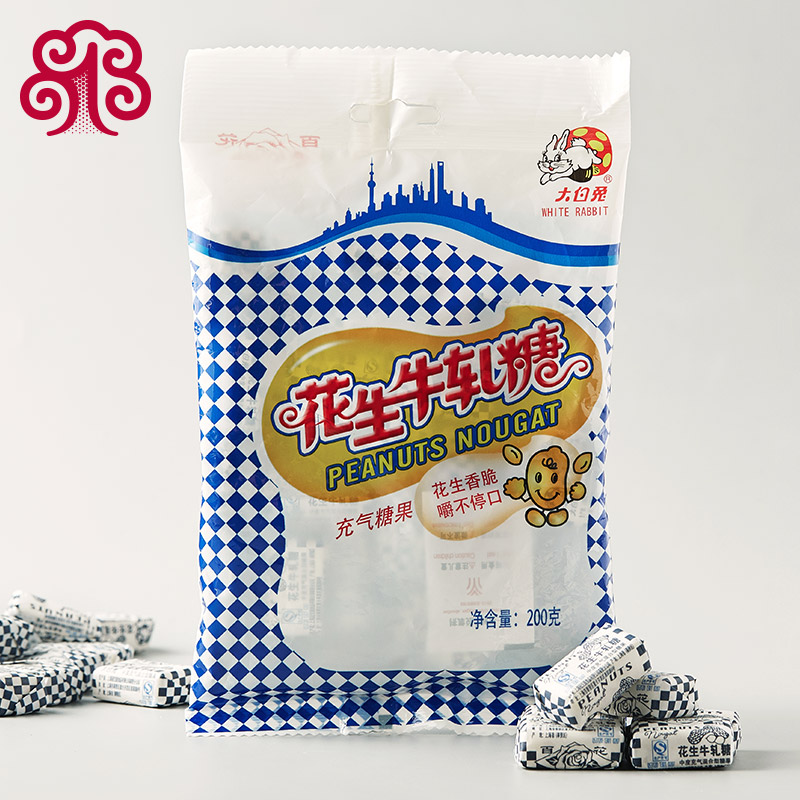 Great White Rabbit Peanut Bull Rolling Sugar 200g bagged Shanghai Tenn. Nostalgic Bagged Sugar Year Goods Small Candy Year Goods