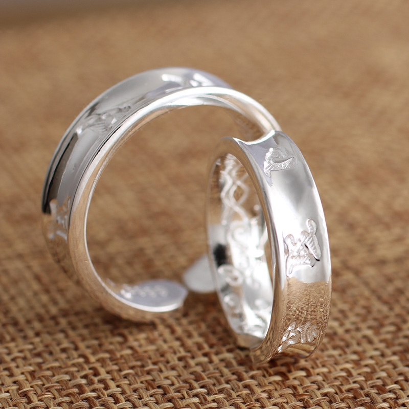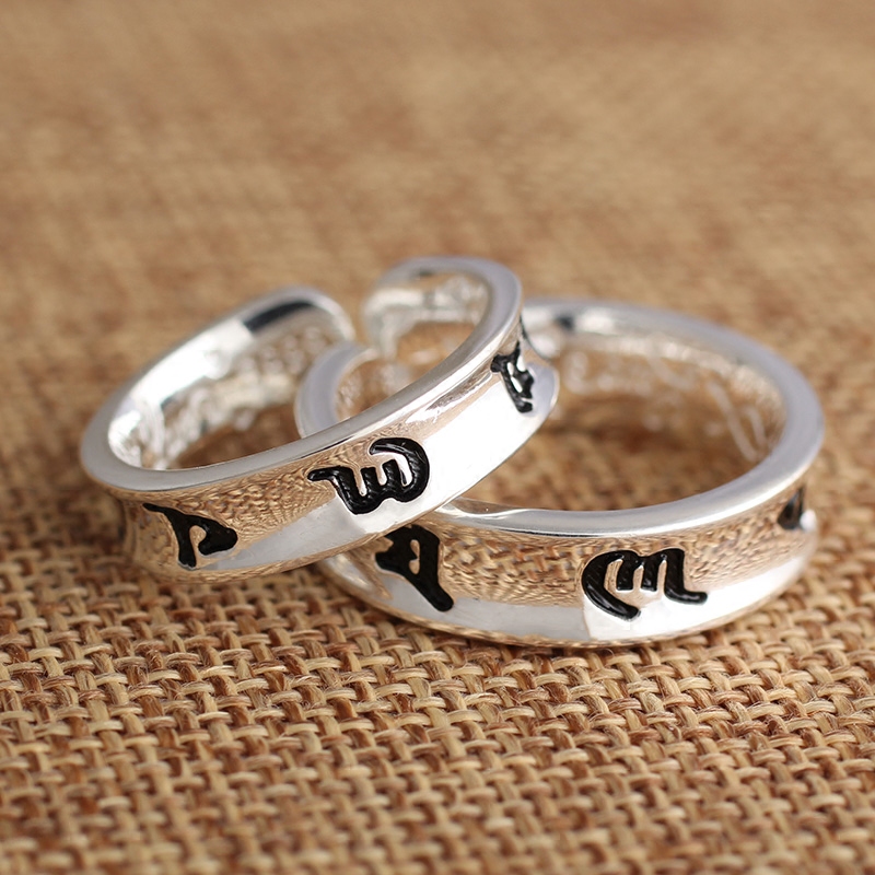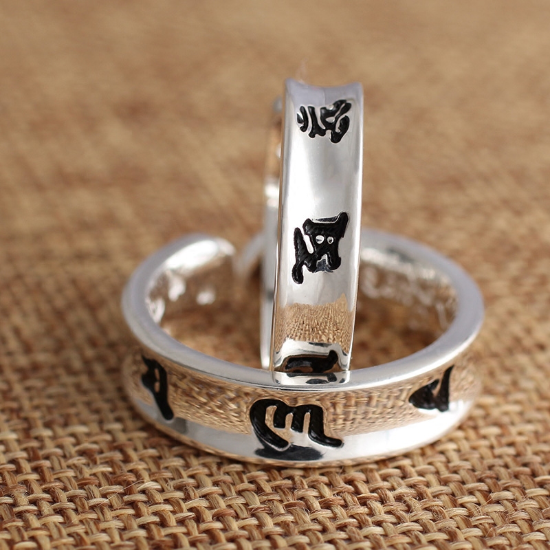 Jiuxi Silver Building S999 Foot Silver Six Words Real Words Lovers Opening Retro Pure Silver Ring Men And Women Pair Ring Silver Ring