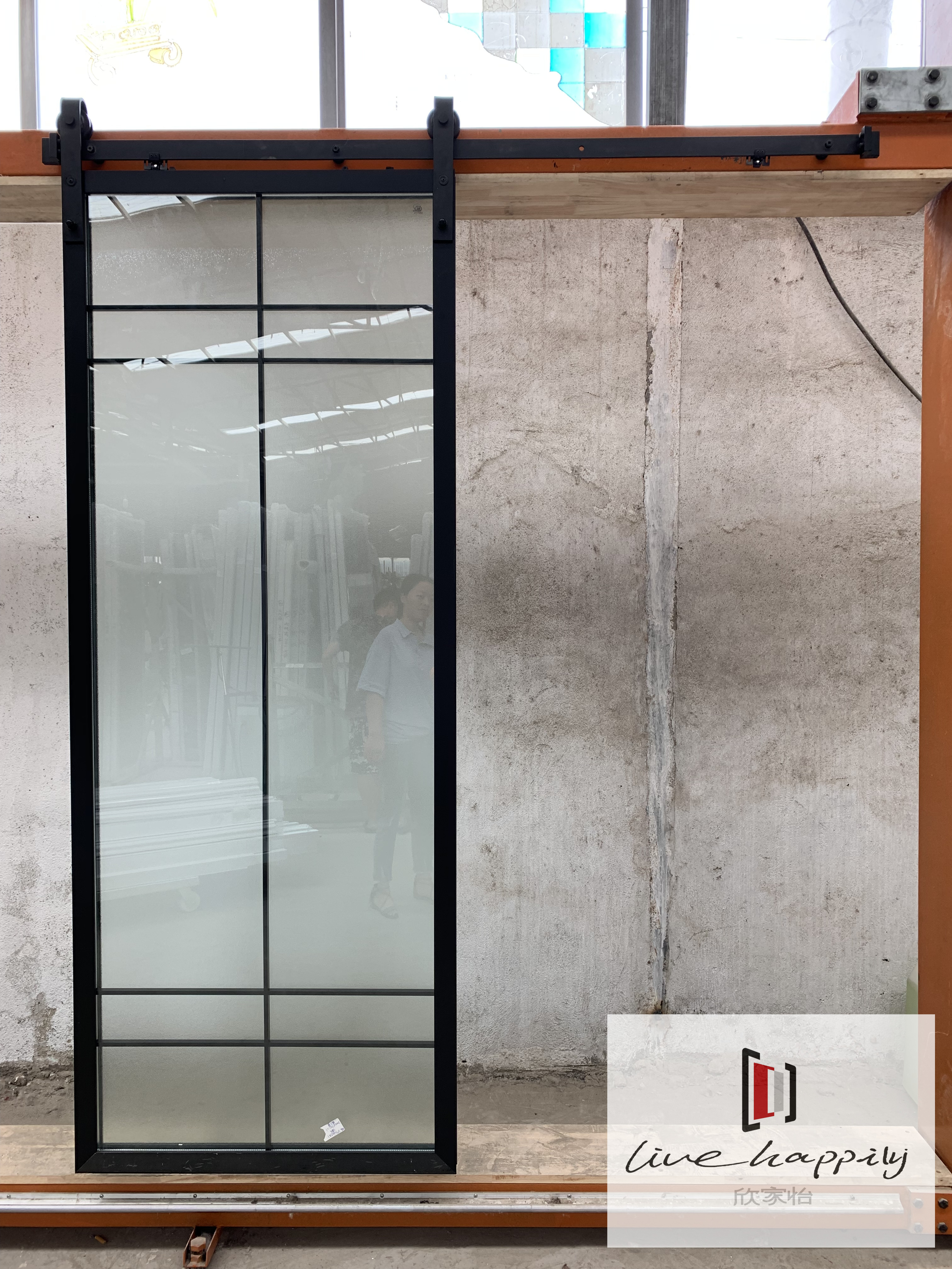 Light extravagant minimalist narrow side glass barn door hanging wheel Ramen aluminium magnesium alloy moving door kitchen book room Living Room Compartment