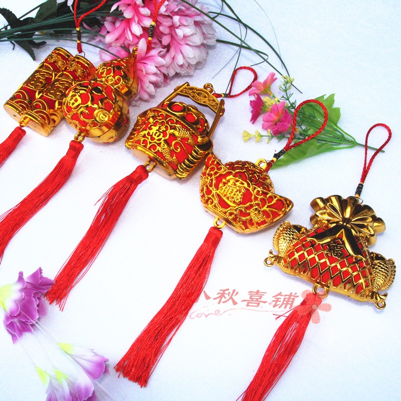 Hot pins Chinese knots gold fish pendant children and grandchildren barrel Money bag decorated with double fish hanging decoration wedding New Year's gold Yuanbao