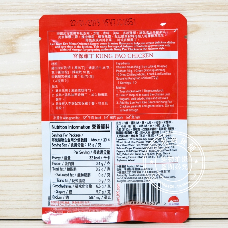 Hong Kong-Macao shopping port version Li Jinkee Palace Pau Chicken Ding Sauce China Famous Vegetable Series convenient to cook the sauce pack 70g-Taobao