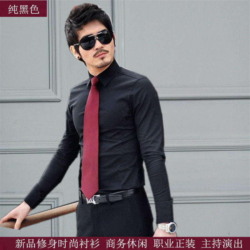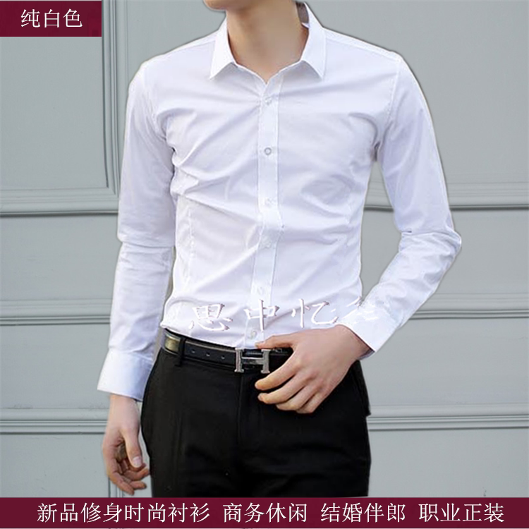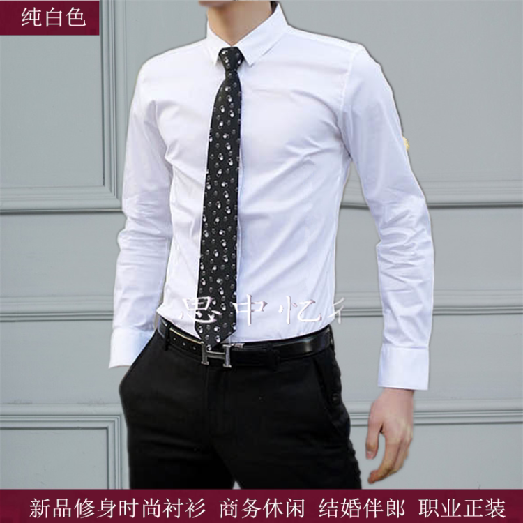 Pure white business style shirt pure black business leisure shirt