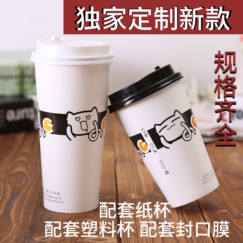 400 500ml Disposable Paper Cup Milk Tea Cup Thickened Packed Juice Cup Coffee Cup Hot Drink Cup With Lid Customized