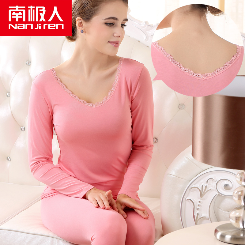 Antarctic autumn clothes sanitary pants suit female Modal life thin low V-neck beauty body big red wedding underwear