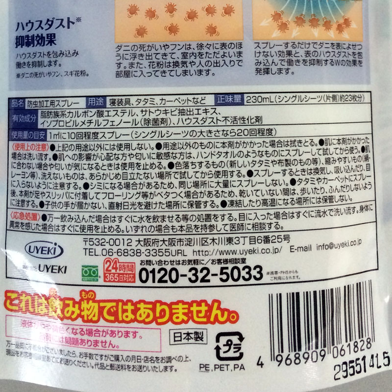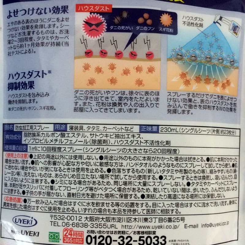 Japan UYEKI double effect mite spray for desmiticide de mites to kill mites spray Spray Upgraded Version Supplement 230ml