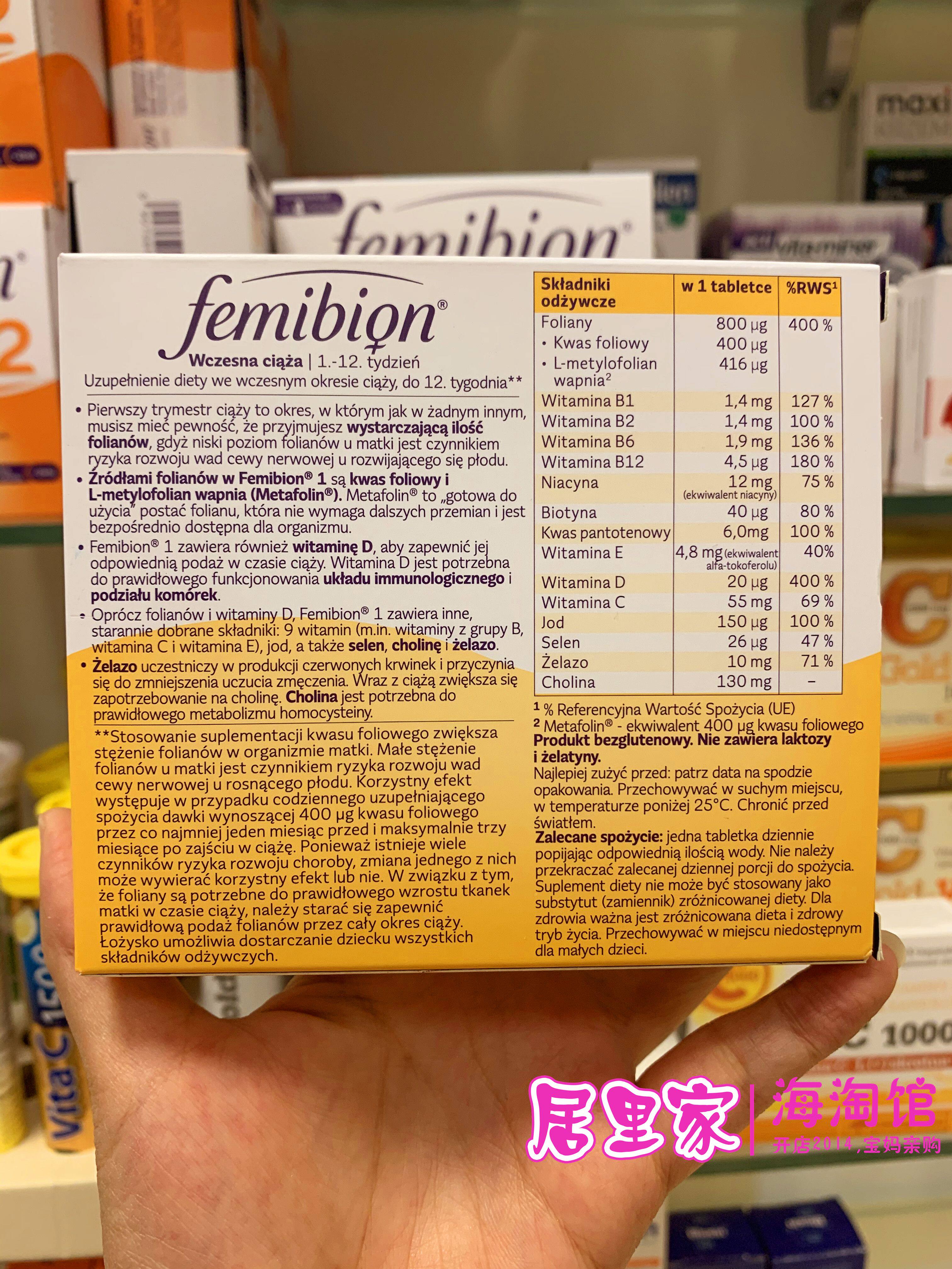 German Ivian pregnant women active folic acid vitamin Femibion1 segment 28 capsules 12 weeks pregnant with iodine