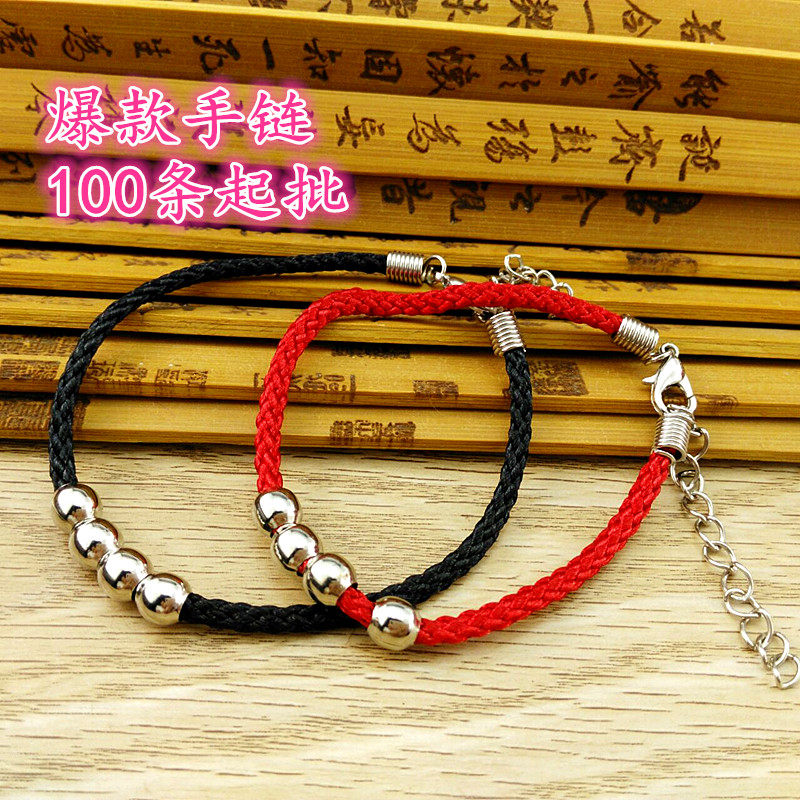 Red and black four-bead bracelet lucky cat crystal couple lanyard beaded diy hand-woven jewelry accessories materials