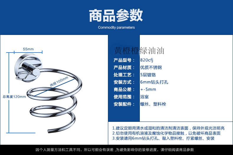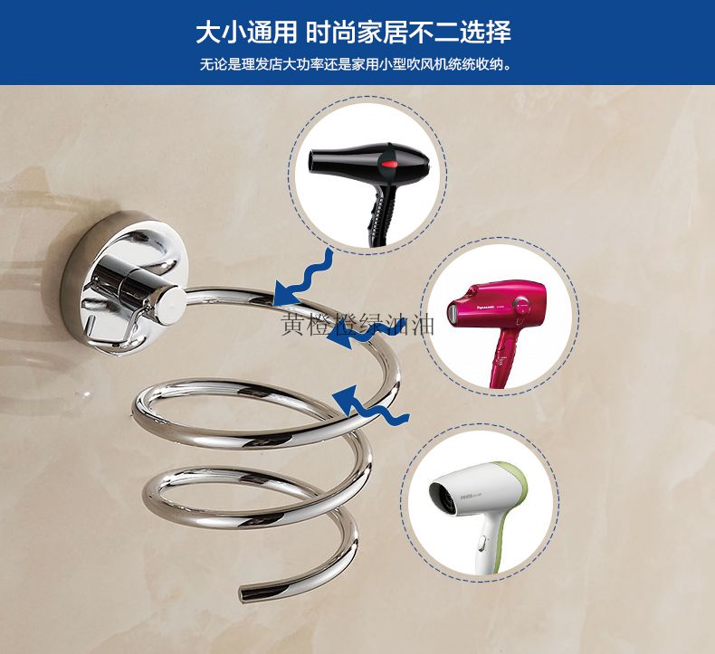 High-end household free punch hole 304 stainless steel hair dryer rack bathroom shelf hair dryer belt plug hook gold