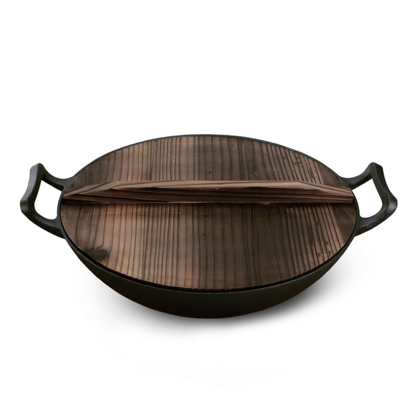 36cm round-bottomed frying pan with wooden cover 36cm flat-bottomed frying pan with wooden cover 36 round-bottomed frying pan with stainless steel cover (slightly larger) 36cm flat-bottomed frying pan with stainless steel combination cover 32cm round-bottomed frying