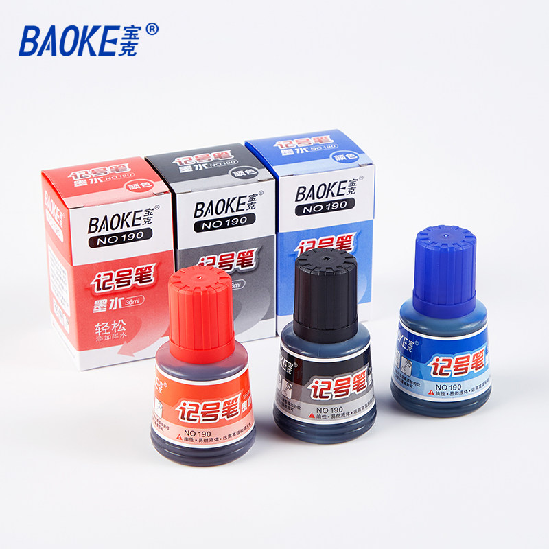 Bauck 190 Mark Pen Oil singular notes ink Supplement liquid black red and blue 12 bottles of box waterproof is not easy to fade away from hard rubbing logistics Mark tick pen with filling fluid