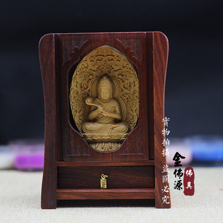 Red Twig Carry-on Shrine Mini Buddha Statue Patron Saint Chanting Sutra Offerings to the Buddha Box Small Buddha Shrine Wood carved Buddha Shrine Home