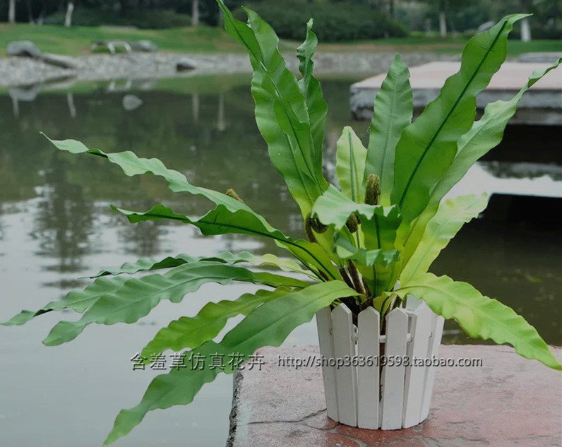 Simulated green plant bird's nest fern leaves glued to the touch green plant soft decoration placed restaurant landscaping decoration materials fern leaves