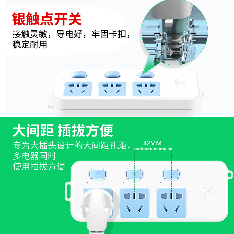Bull plug row multi-function household plug board without wire extension cable with switch Wireless socket row extension cable