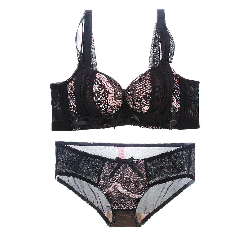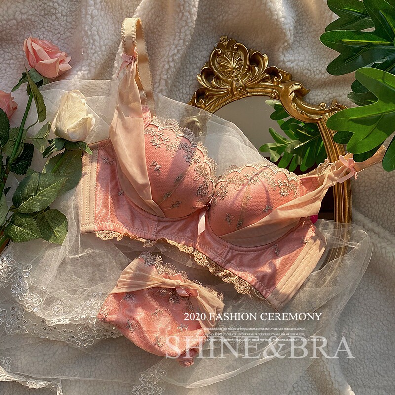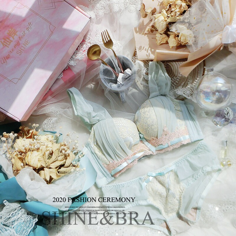 Fairy shore underwear thick gathered adjustment large closed breast small chest Four-breasted embroidered lace small cutie set with steel rims