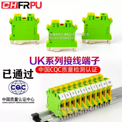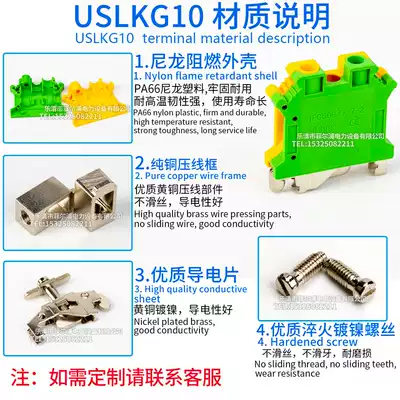 Manufacturer UK rail type PE yellow green ground terminal block USLKG10 10mm 61A terminal block UK10N