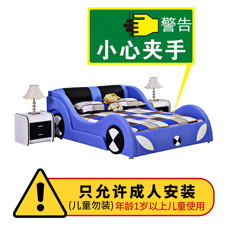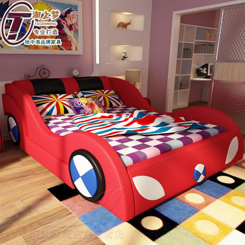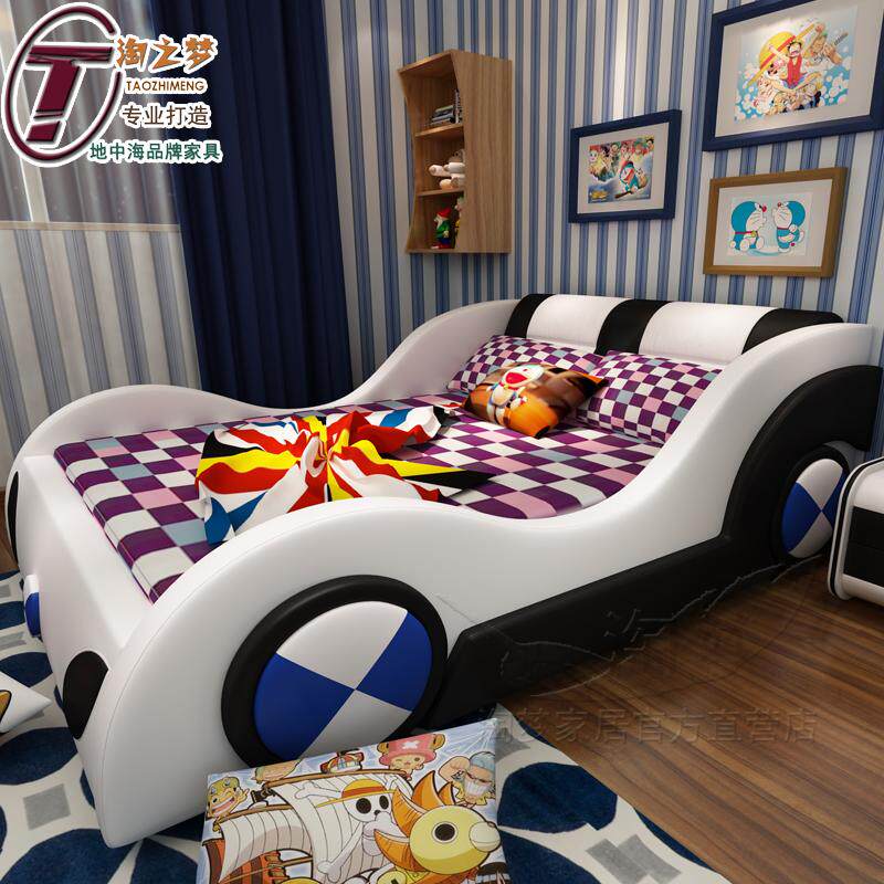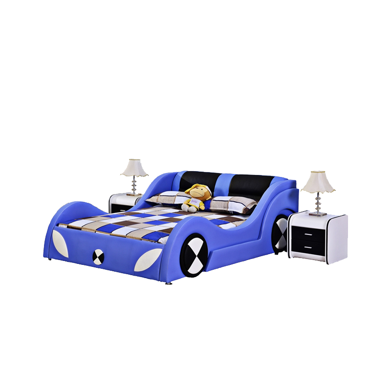 Simple modern cartoon leather bed BMW shape children's bed fashion boy and girl bed personality double bed