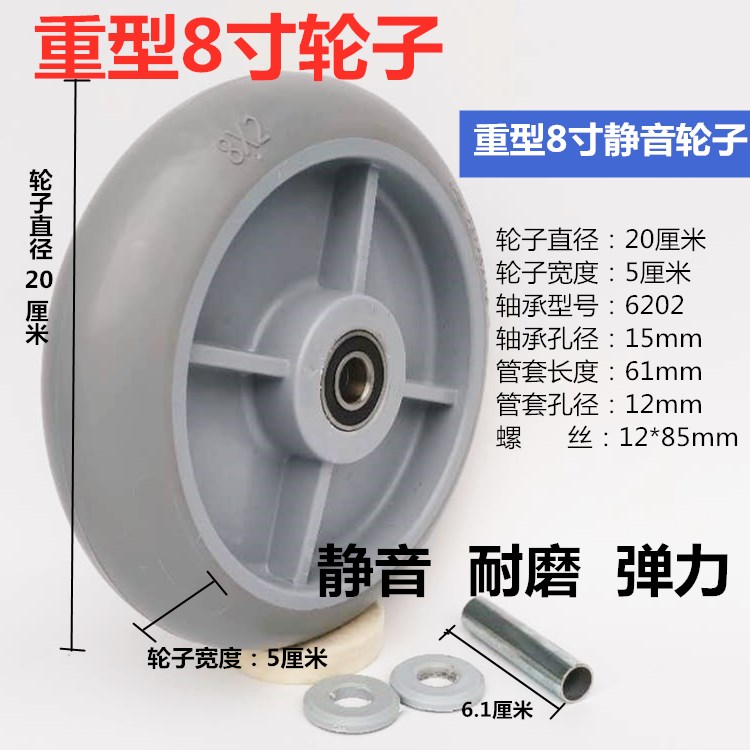 Heavy Rubber Silent Castors 4 Inch 5 Inch 6 Inch 8 Inch Flatbed Truck Trolley Trailer Shock Damping Wheels Solid Rubber
