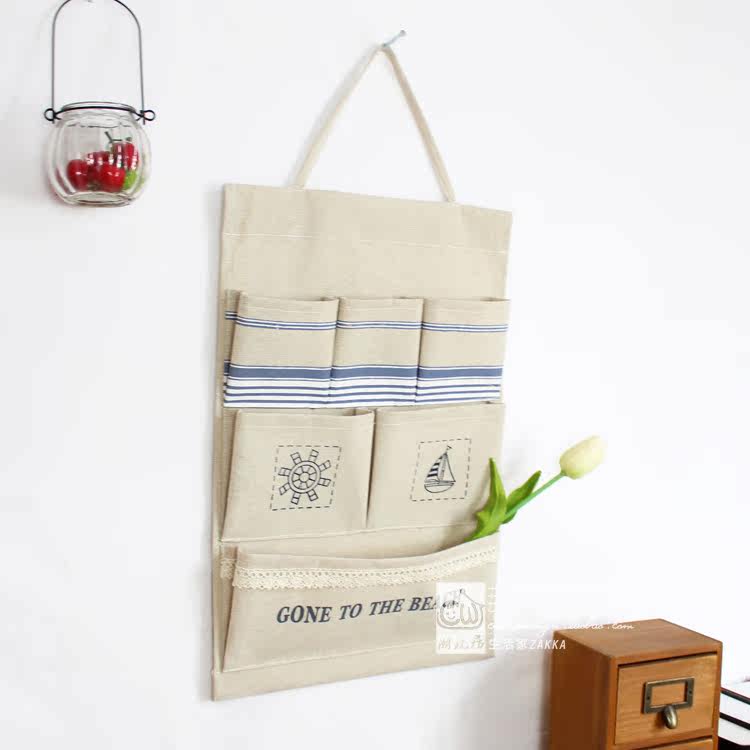 Mediterranean ocean style cotton linen containing hanging bag wall door rear containing hanging bag wall-mounted bag storage debris bag