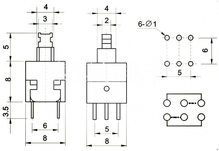 Reset self-locking button switch straight plug 6 feet wide 8MM long 8MM height 14 5MM 15 5MM key cap 6MM