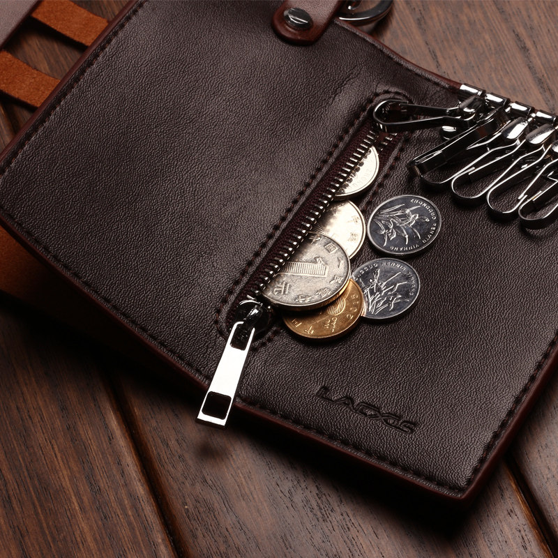 Multifunctional genuine leather car key bag large capacity male and female type waist hanging key buckle men zero money bag pull chain key