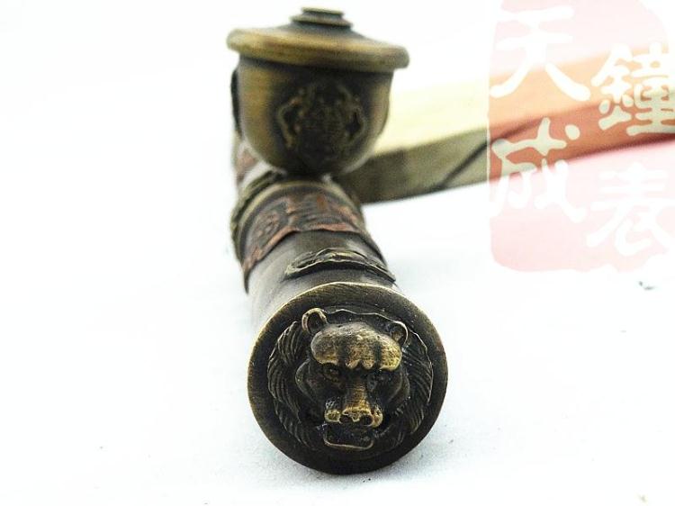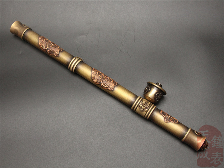 Seiko pure copper carved Fushou pattern cigarette gun big cigarette rod old-fashioned cigarette rod dry cigarette bag retro play props collection