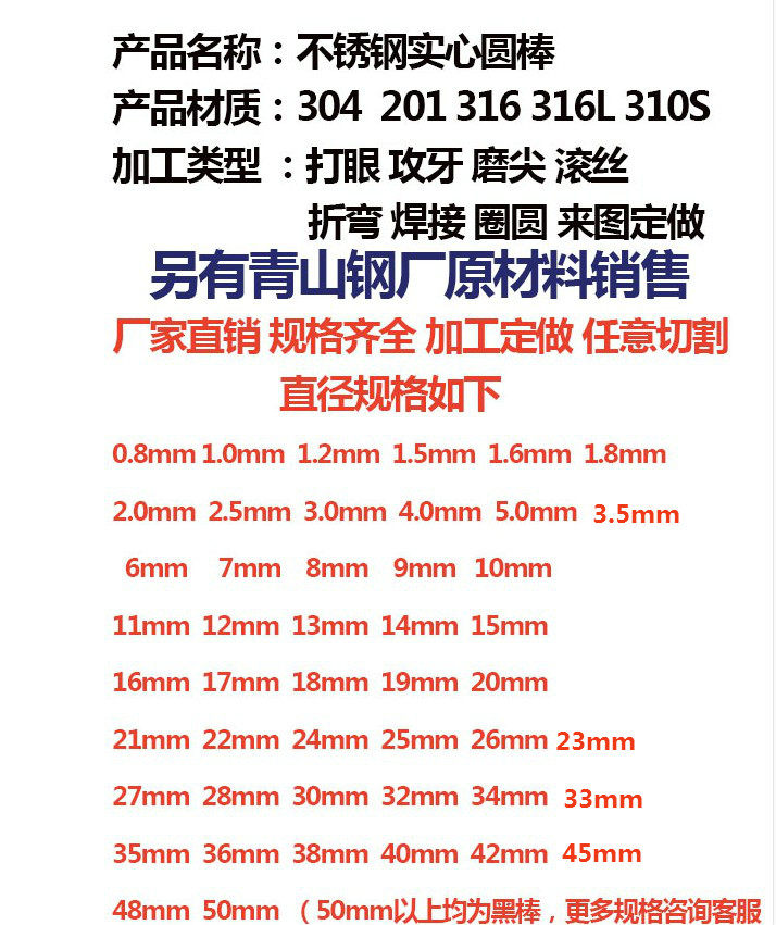 φ1mm*1 meter (10 sticks)φ1.5mm*1 meter (10 sticks)φ2mm*1 meter (5 sticks)φ2.5mm*1 meter (5 sticks)φ3mm*1 meter (5 sticks)φ3.5mm*1 meter (2 sticks)φ4mm*1 meter (2 roots)φ4.5mm*1 meter (2 roots)φ5mm*1 meter (2 sticks)φ6mm*1 meter (2 roots)φ6.5mm*1 meter (2 roots)φ6.5mm*1 meter (2 roots)φ7mm*1 meter (2 roots)φ7mm*1 meter (2 roots)φ7mm*1 meter (2 roots)φ7mm*1 meter (2 roots)φ7mm*1 meter (2 roots)φ7mm*1 meter (2 roots)φ7mm* 1 m (2 sticks) φ8mm * 1 meter (2 sticks) φ9mm * 1 meter (2 sticks) φ9.5mm * 1 meter (2 sticks) φ10mm * 1 meter (2 sticks) φ11mm * 1 meter (2 sticks) φ12mm * 1 meter (2 sticks) 13mm * 1 meter (2 sticks) 14mm * 1 meter (2 sticks) 15mm * 1 meter (2 sticks) Other specifications Number of inquiries Lot price change