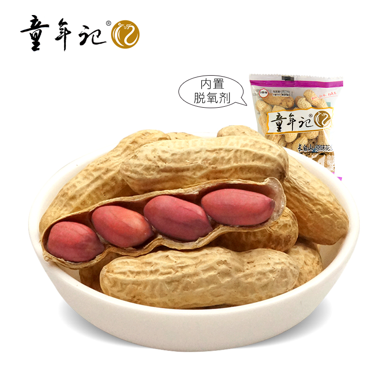 (Childhood Notes _ Original Taste Peanuts 500gx4 bag) Independent pouch red leather peanuts with shell nuts fried stock snacks