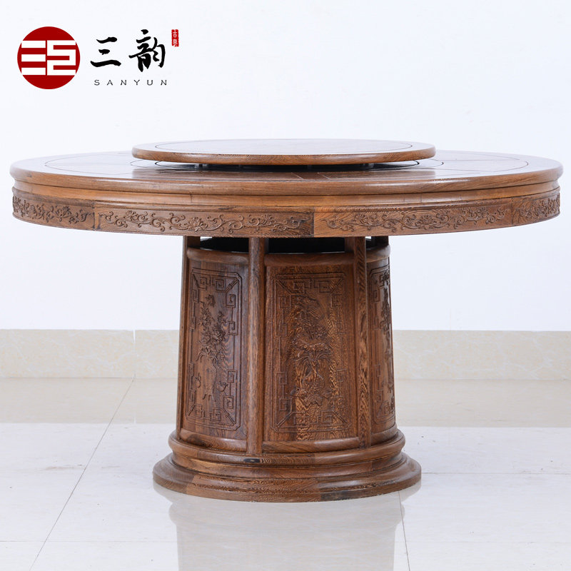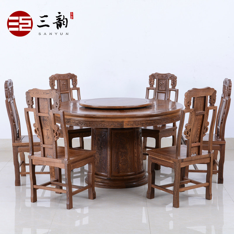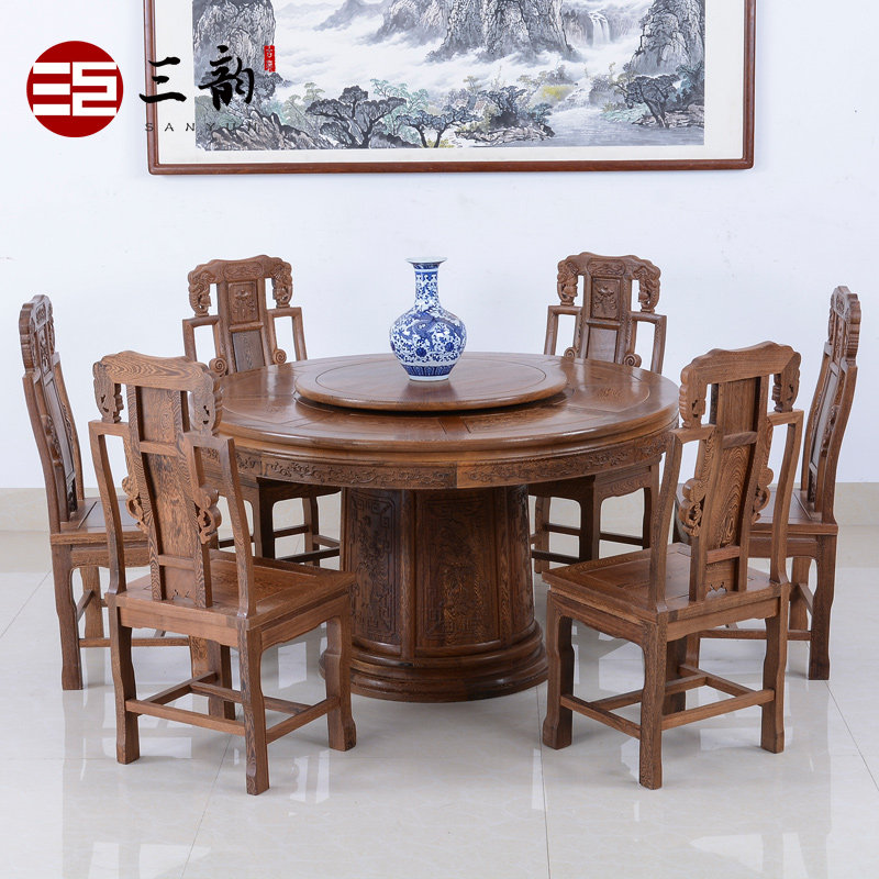 Mahogany furniture Wenge dining table and chair combination Chinese antique Ming and Qing dining table Solid wood dining table Round dining table