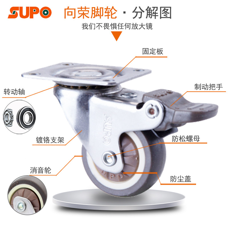 1 1 25 1 5 inch Xiangrong universal caster rubber wheel with brake flower stand tea table furniture sofa crib wheel
