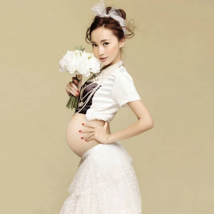 189 rental pregnant woman photo yarn dress playful and lively fashion cute big card European and American little fresher T skirt suit