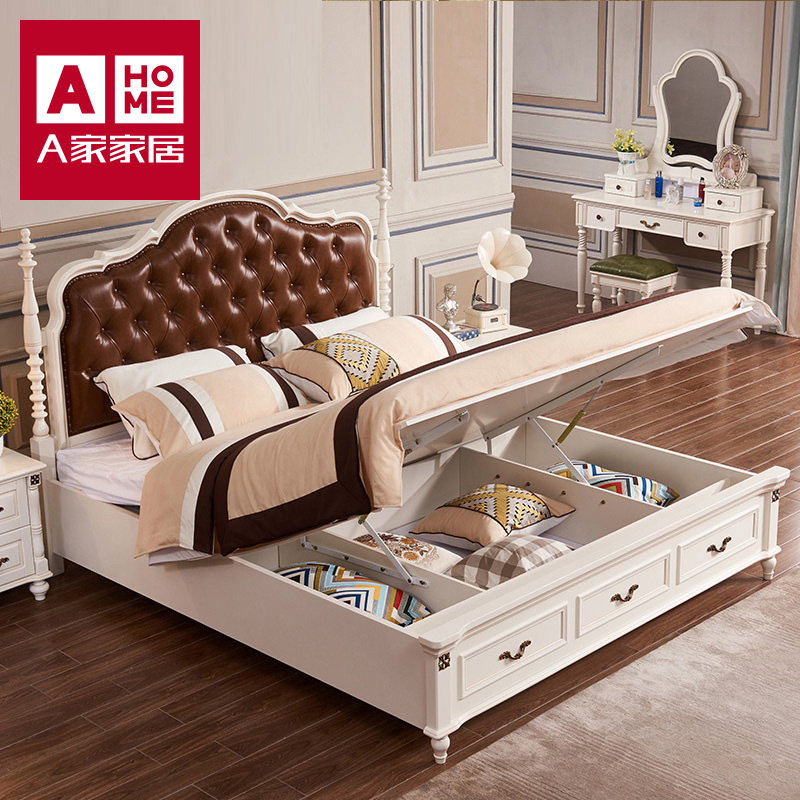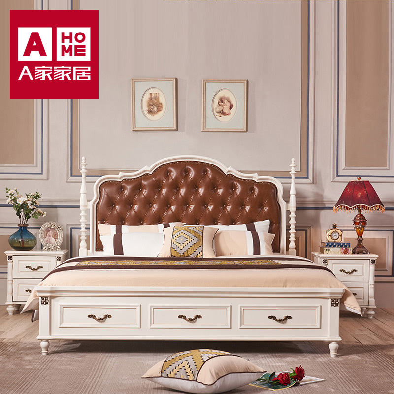 a home American Country Solid Wood Bed 1 5 m Master Bedroom 1 8 soft pack double bed Euro - style large bed XM008 clean