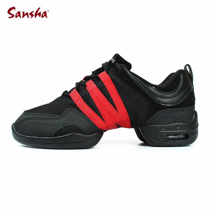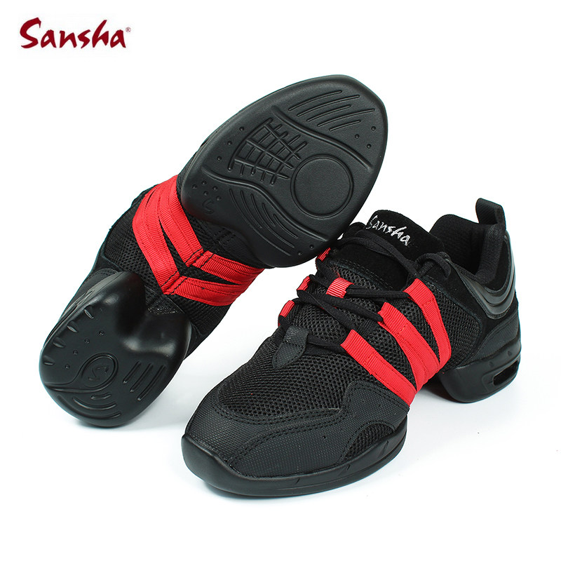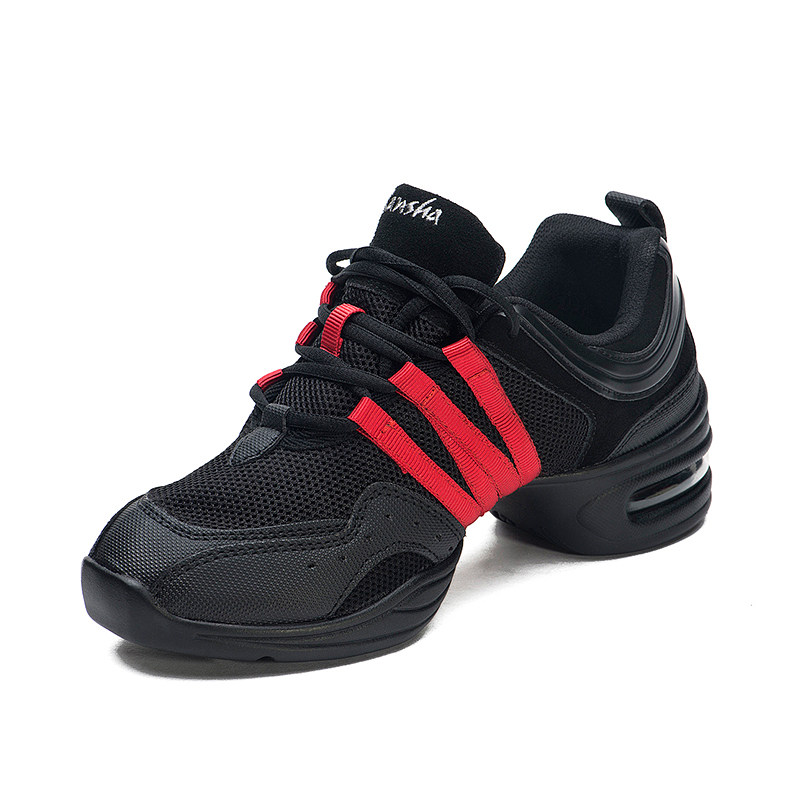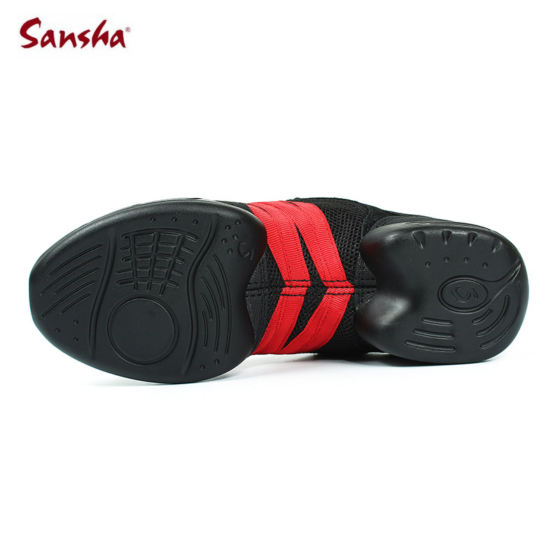 Sansha Dance Shoes Mesh Face Dance Shoes Black Red Strips Dancing Shoes Women Soft-bottom Modern Square Dance Shoes Fitness Shoes