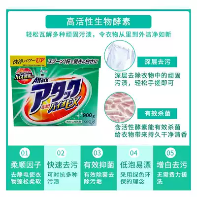 Japan's native Kao enzyme washing powder quickly and efficiently penetrates, instant, strong, oil-free, rub-free, bleaching 900g