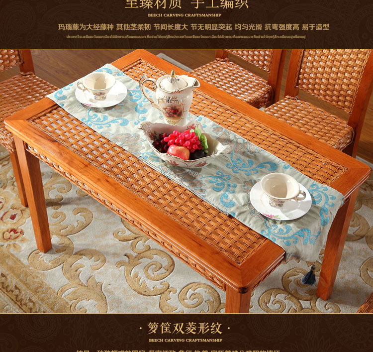 Yō Shijiaji Vine Dining Vine wood table 1 2 m rattan table rattan table rectangular vine dining One table 4 chairs