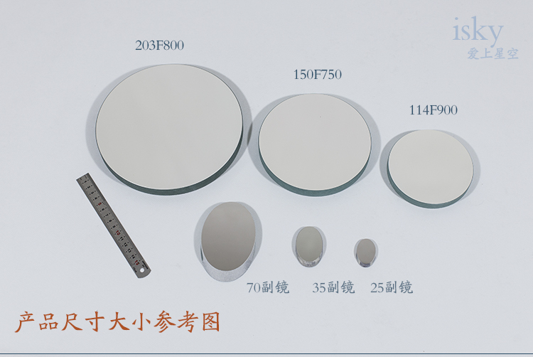 150mm reflective main mirror 35mm secondary mirror 70mm minor axis secondary mirror 35mm minor axis secondary mirror 203mm diameter 800mm focal length Reflective main lens 150mm diameter 75