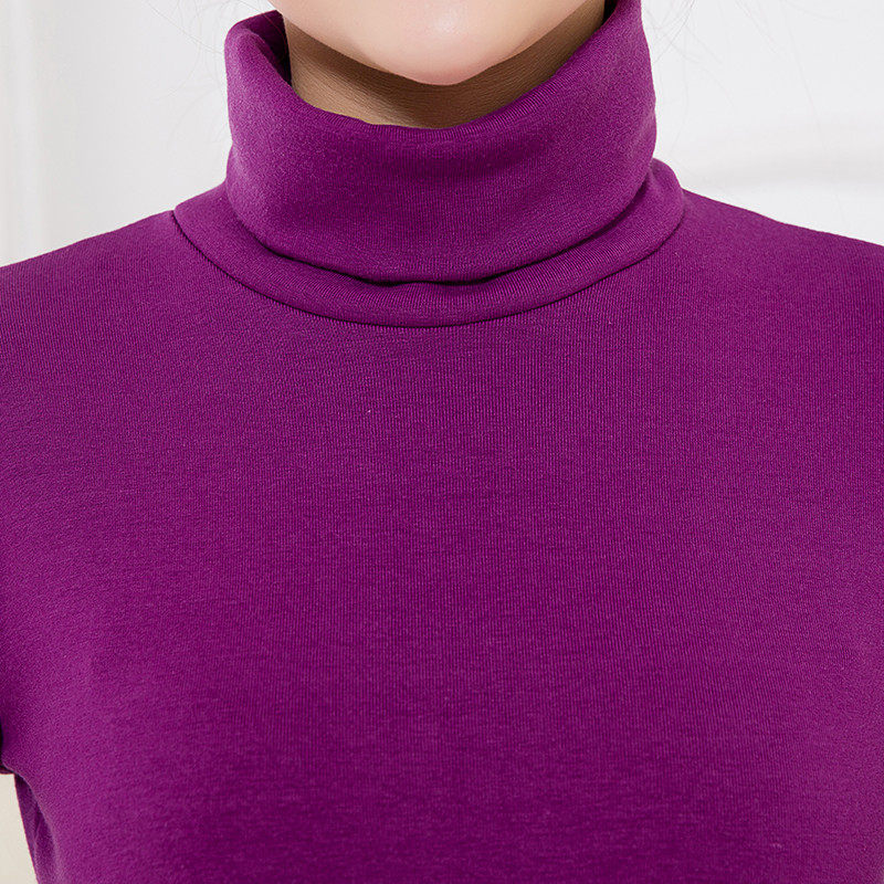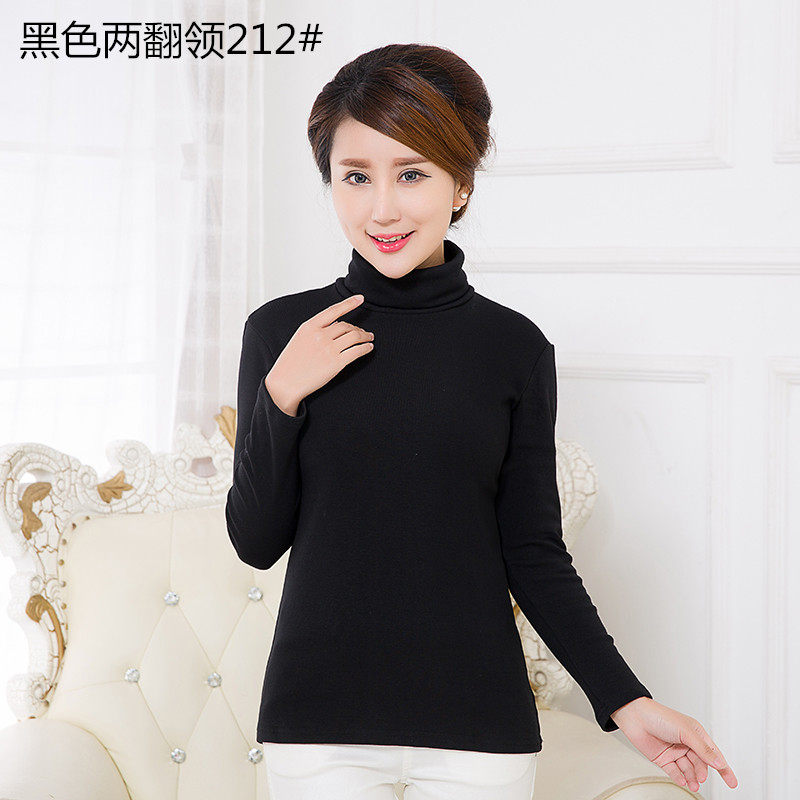 Middle Aged Long Sleeve T-shirt Woman Pure Cotton Mom Loaded Full Cotton Pure Color High Collar T-Shirt Autummy Sweatshirt Thickened Underwear