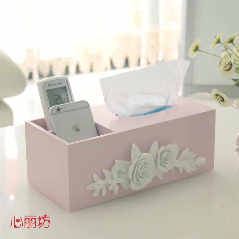 Wooden carved paper towel storage box Wooden European pastoral remote control board finishing simple household goods toilet paper box