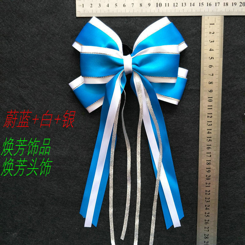 Flower ball cheerleading and beautiful playground dance competition butterfly knot hair accessories hair card-issuing head Playboy blue silver-Taobao