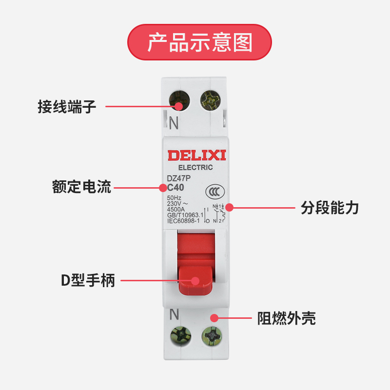 Delixi Air Switch 1P N two - line DZ47P double - in dual - out 16A household circuit breaker 10A finished open