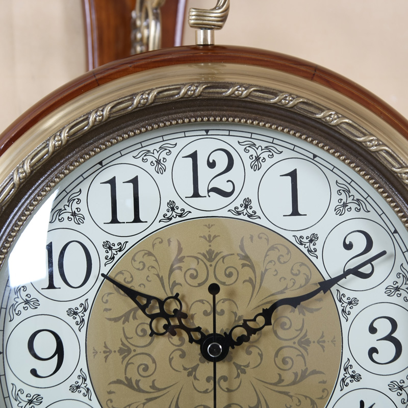 TQJ European Solid Wood Double-sided Wall Clock Brass Clock Creative Watch Watch Wall Clock in the Living Room